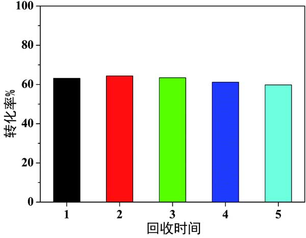 進(jìn)行回收試驗(yàn)以研究活性炭催化劑的異質(zhì)性和穩(wěn)定性。第一次催化反應(yīng)完成后,過濾回收活性炭載鉑催化劑(硫酸活化),用蒸餾水洗滌,55℃真空干燥12小時(shí),重新用于第二次催化反應(yīng)。在另外三個(gè)運(yùn)行中實(shí)施了相同的操作。同時(shí),在第一次運(yùn)行后,通過檢測回收的活性炭催化劑和濾液中的鉑量。圖3展示了回收試驗(yàn)的結(jié)果。觀察到甲基環(huán)己烷的轉(zhuǎn)化率在59.8-64.4%范圍內(nèi)有小幅波動,表明活性炭催化劑的活性在重復(fù)使用4次后幾乎沒有下降,表明活性炭催化劑具有良好的穩(wěn)定性。第一次運(yùn)行后,反應(yīng)中的鉑浸出量為0.33ppm。當(dāng)鉑催化劑從反應(yīng)體系中過濾出來時(shí),在濾液中很少觀察到催化反應(yīng),這證明了活性炭載體上的鉑作為非均相活性位點(diǎn)。