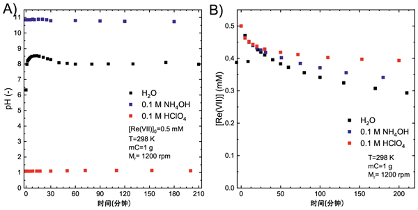 在不同溶液中解吸的動(dòng)力學(xué)曲線。在過程的初始階段解吸率最高。當(dāng)大約91%的金屬解吸到0.1M/HClO4中時(shí),計(jì)算最終濃度。在這種情況下,錸化合物的再溶解與解吸一起發(fā)生。水的特點(diǎn)是解吸率最低;只有15%的Re被解吸。在0.1M/NH4OH的情況下,3小時(shí)后的最終濃度為0.093mM,38%的Re被解吸。然而,0.1M/NH4中的錸濃度OH在解吸的第一個(gè)小時(shí)內(nèi)增加,之后略有下降。
