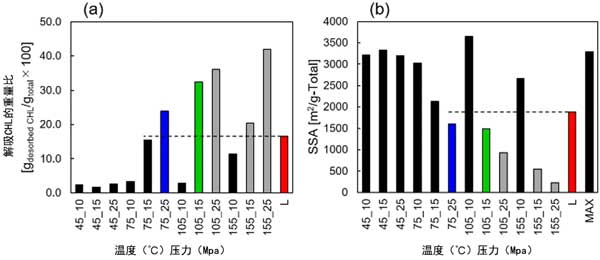 圖2:(a)TG測(cè)量期間解吸的CHL的重量比。(b)浸漬過程后的SSA。