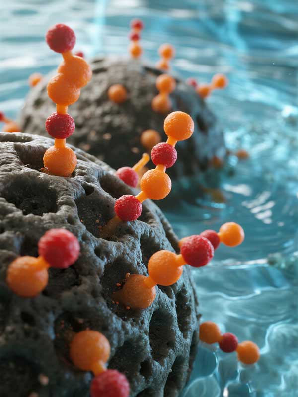想象一下,活性炭就像一個布滿無數微小孔洞和溝壑的超級海綿。當含有PFAS的水流經活性炭濾床時,水中的PFAS分子會被這些巨大的表面積所產生的范德華力牢牢地“抓住”并固定在孔道內。這個過程就像磁鐵吸附鐵屑一樣,PFAS分子從水中被分離出來,從而實現了水的凈化。