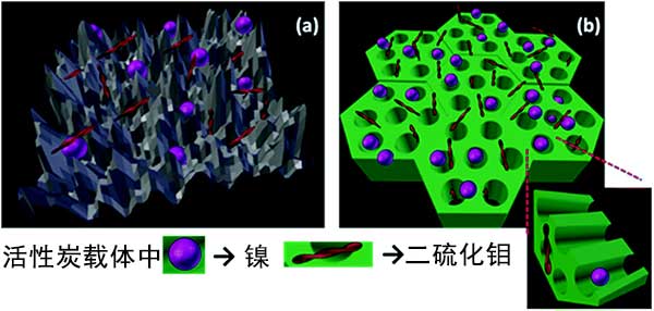 為了增加活性炭催化劑的脫氧趨勢,我們研究中引入了鎳作為活性物質二硫化鉬的促進劑。在金屬催化劑中,鎳是廉價且可獲得的過渡金屬,其一直用于氫化反應。用于加氫脫氧反應的鎳基催化劑的應用主要產生氫化產物,其中脫氧的順序較低。然而,可以形成鎳-鉬-硫物質,其在鎳和鉬之間產生促進催化劑的脫氧趨勢的協(xié)同效應。