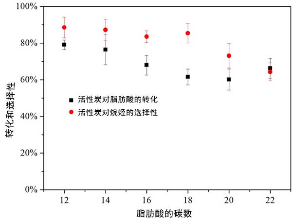 活性炭對具有不同碳數(shù)脂肪酸的脫羧