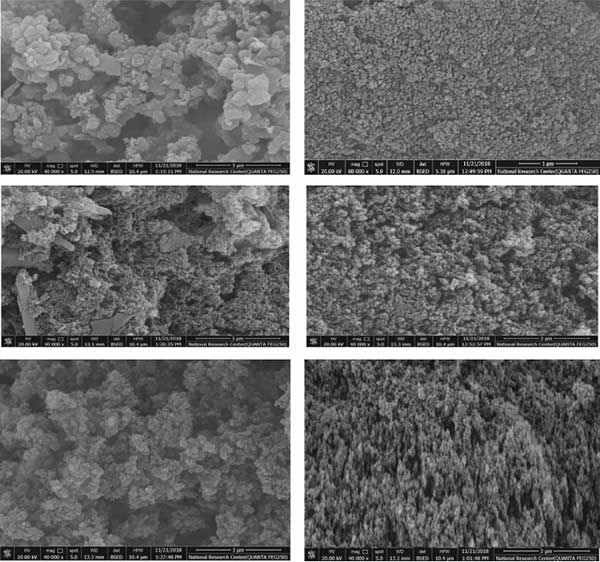 對于SEM研究的情況,活性炭的形態(tài)顯示出不均勻和粗糙的表面(圖2)。在放大倍數(shù)為40000時,可以看出表面被硅磷酸鹽晶體覆蓋。來自稻草的蘇打制漿黑液的活性炭具有較高的硅磷酸鹽晶體。然而,使用中性亞硫酸鹽制漿黑液的活性炭中只有較低的晶體。