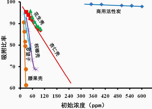 圖2:用量變化對各種活性炭的影響。