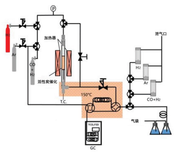 甲醇合成后,將活性炭催化劑插入連續(xù)的管狀固定床反應器中(圖1.)。在將工作條件調節(jié)至壓力14-20 bar和溫度220°C的條件下測試穩(wěn)定性。在管式反應器中總共填充1-2克活性炭。在反應步驟之前,在操作溫度下用H 2流還原催化劑。使用機器生成的甲醇分析氣體為了防止催化劑液化,活性炭催化劑層后的管道保持在150°C。
