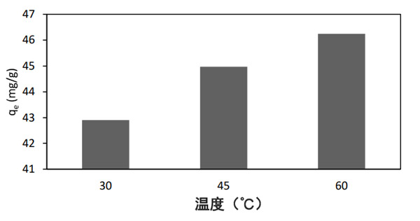 圖3:溶液溫度對(duì)活性炭吸附容量的影響。