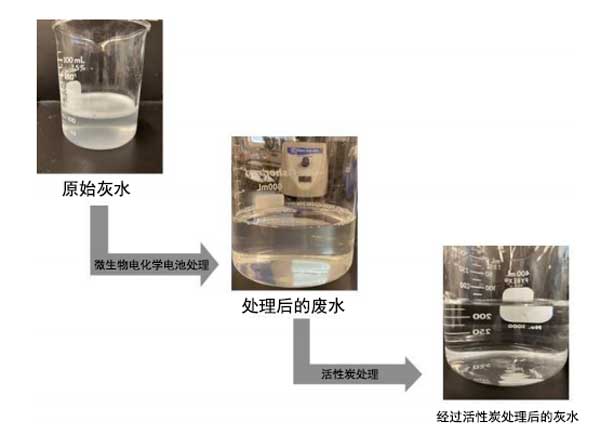 圖2:生水和活性炭處理過(guò)的灰水的照片。