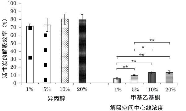 圖1:活性炭用表面活性劑溶液解吸有機溶劑的效率。