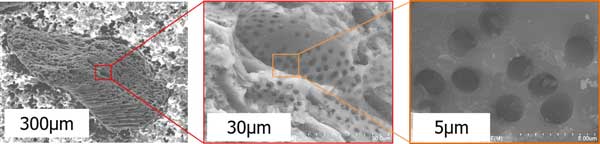 為實驗準備了兩種類型的樣品,無裂縫標本和帶裂縫的標本。樣品的尺寸為20×20×4mm。使用丙烯酸板形成裂縫。使用椰殼制備的載銀活性炭(活性炭+0.1%AgCl),并使用氯化銀實現(xiàn)銀的浸漬。盡管粉末粒度具有寬的尺寸分布,但250-500μm的顆粒占約90%的顆粒。圖2顯示了活性炭表面結(jié)構(gòu)的掃描電子顯微鏡(SEM)圖像:發(fā)現(xiàn)其表面是多孔的,并且在大孔內(nèi)部觀察到幾個中孔。在實驗期間使用恒電位儀在兩種條件下測量樣品的開路電位:與活性炭接觸和不接觸活性炭。在實驗之后,使用光學顯微鏡觀察樣品表面。測量在開路條件下進行近40小時(在中性溶液中)和24小時(在堿性溶液中)。